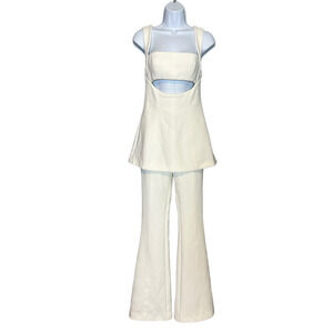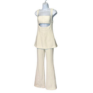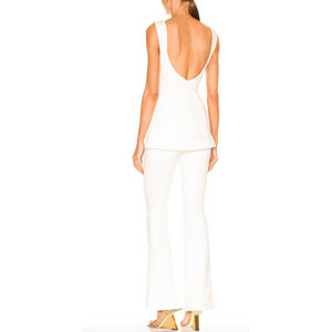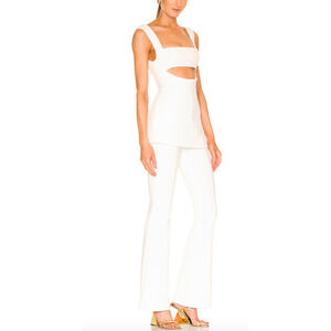 Elegant white jumpsuit with cut-out detail. Sleeveless design. Perfect for formal occasions.