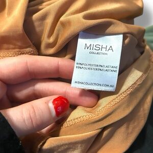 MISHA COLLECTION Women's Tan Copper Faith Ruched Midi Dress Size 4
