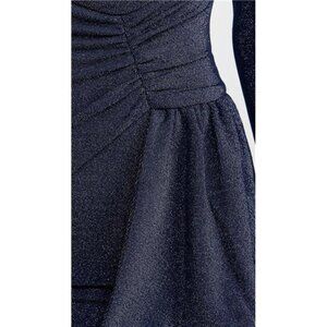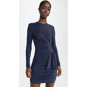 MISHA Evetta Jersey Mini Dress French Navy Metallic Ruched Bow Holiday Cocktail