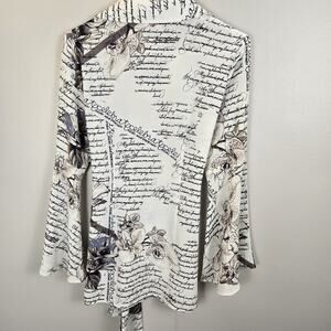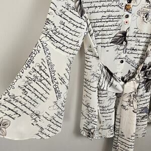 MISHCA French Garden Poplin Blouse Flare Sleeve Tie Front SMALL Boho Peasant