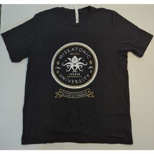 MISKATONIC UNIVERSITY H.P. Lovecraft Black White Gold Short sleeve T-shirt Men's Size XL