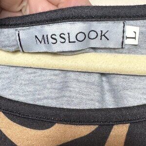 MISLOOK Charcoal Grey and Tan Short Sleeve Midi Sheath Dress L