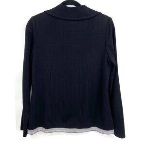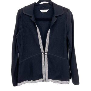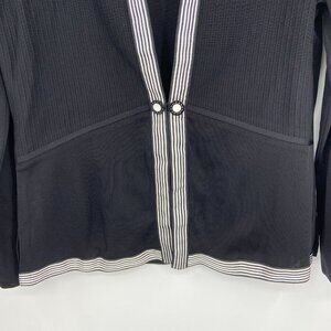 MISOOK Black Ribbed White Stripe Trim Hook & Eye Button Closure Cardigan Sweater