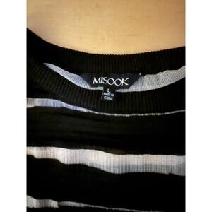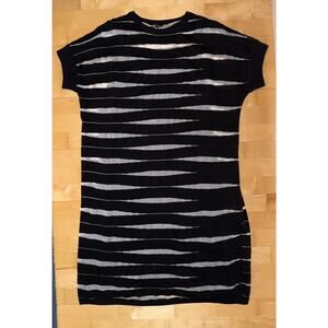 MISOOK Black White Textured Print Acrylic Knit Shift Sweater Short Sleeve Dress