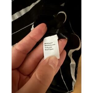 The MISOOK Black White Textured Print Acrylic Knit Shift Sweater Short Sheeve Dress is a stylish and versatile piece for women. With a V-neckline and short sleeves, this dress features a flattering shift silhouette and a textured print design. Made from a blend of polyester and rayon, the knit fabric ensures comfort and flexibility. The dress is lined for added quality and comes in a size L, making it suitable for regular sizing. The black color and modern shift style make it a perfect choice for both casual and formal occasions.
