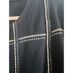 MISOOK Black Windowpane Knit Duster Gold Tweed Trim Jacket Cardigan - Sz 2X