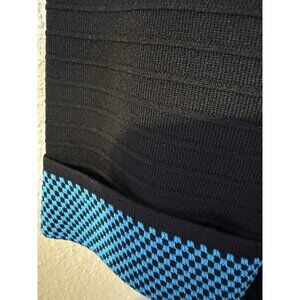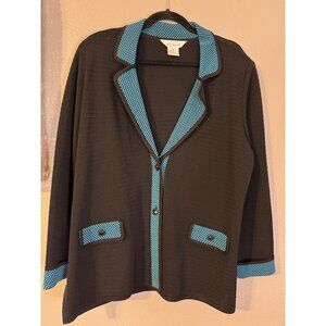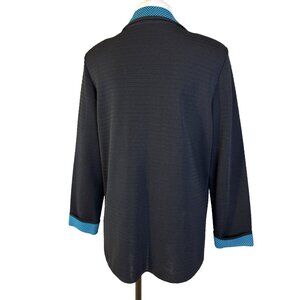 This pretty cardigan style jacket is from Exclusively Misook in a women's size extra large. Black and blue n color.