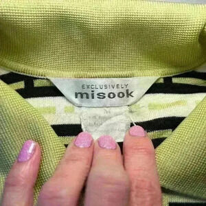 EXCLUSIVELY MISOOK Knit Zip Collared Sweater Cardigan Jacket Green Black White Dash Women Medium