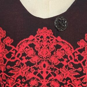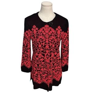 MISOOK Lace Print Long Jacket Cardigan Sweater Red Black Size S Button Work