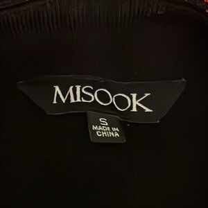 Beautiful MISOOK red and black sweater jacket. CSS Excellent condition. Size small. One button at the top (neck). Measurements laying flat (unstretched and approximate inches)