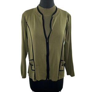 Misook 2-Piece Olive Green Acrylic Knit Zip Up Jacket + Mock Neck Tank