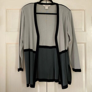MISOOK Open Front Cardigan Long Gray Colorblock Sweater Knit Lightweight Neutral