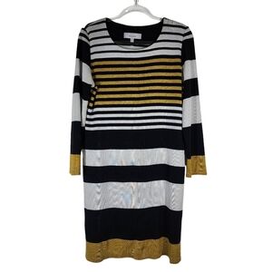 MISOOK STRIPED METALLIC THREADING LONG SLEEVE DRESS