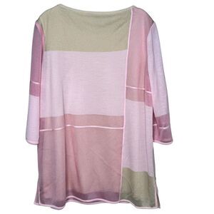 MISOOK Sweater Size Large Pink Sparkle Colorblock 3/4 Sleeve Lined