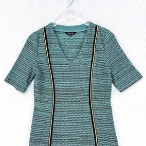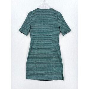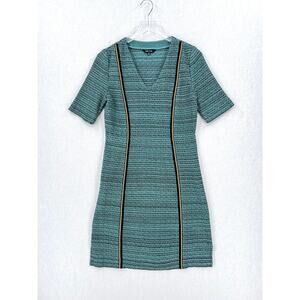 MISOOK V-neck Light Tweed Dress Womens XS Turquoise Short Sleeve Knee length