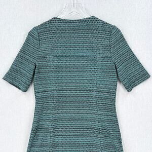 MISOOK Tweed Dress Womens XS Turquoise Short Sleeve Light V-neck Knee Length