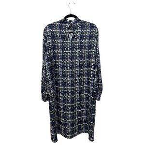 MISOOK Women Pleated Mock Neck Crepe de Chine Printed A-Line Dress LARGE