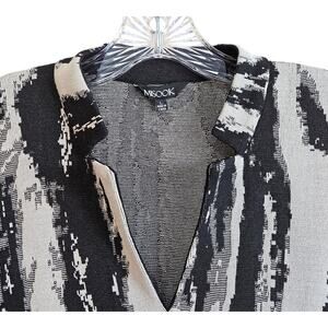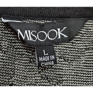 MISOOK Women's L Dress Midi Brushstroke Pattern Black Gray Tie Belt Knit Classic