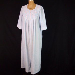 MISS ELAINE Seersucker Zip Front House Dress Robe
