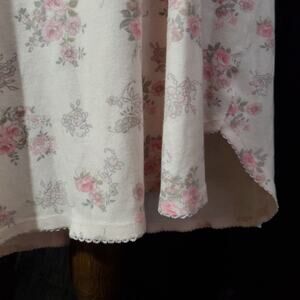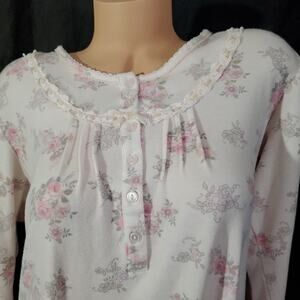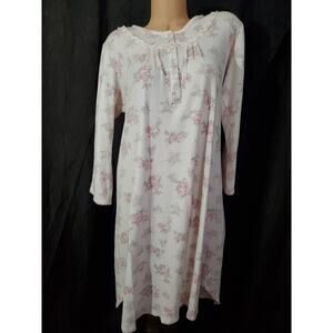 MISS ELAINE Women's Nightgown PINK FLORAL FLANNEL Round Neck Long Sleeve LARGE
