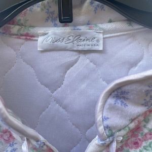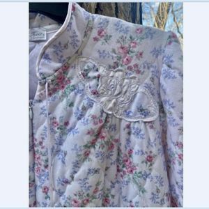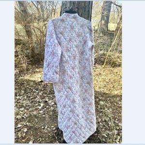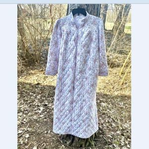 MISS ELAINE ZIP FRONT ROBE vintage Grandma Roses Quilted PINK SZ Med