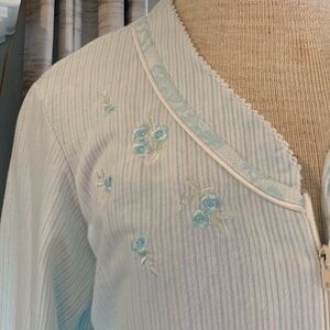 EUC Miss Elaine medium zip up light blue robe. Embroidered flowers around neck. Front pockets super soft. Long sleeve. Small pinstripe.
