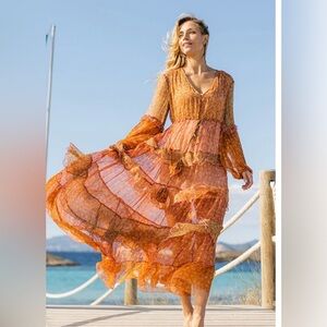 MISS JUNE PARIS JOJOBA TIERED MAXI DRESS SEMI SHEER CHIFFON RAYON ONE SIZE