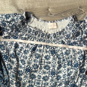 Stunning blue floral mini dress with elasticated neck line, can be worn off the shoulder or on.