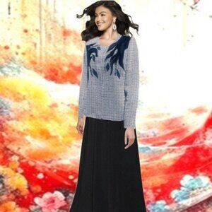 MISS LEE Vintage Basketweave Tweed Black Velvet Applique Statement Jacket Sz XL