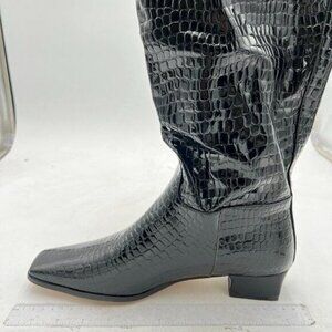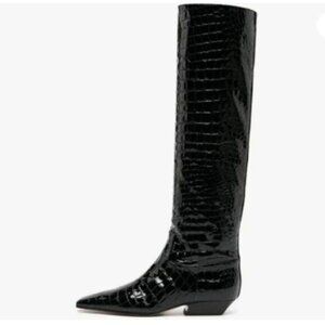 MISS LEFT Closed Square Toe Knee High Boot Wide Calf Low Chunky Shoes