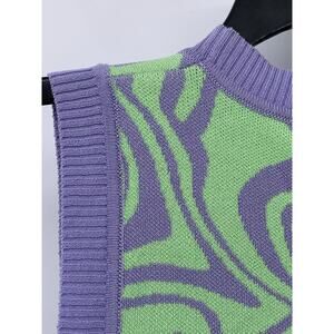 MISS LOVE Women's Purple-Green Swirl Crewneck Sleeveless Retro Sweater Vest SZ M