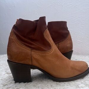 MISS MACIE Cognac LEATHER ANKLE BOOTIES Distressed Sz 9