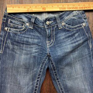 MISS ME BootJeans Rhinestone White Cross Distressed Medium Wash Size 26