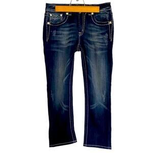 MISS ME Boyfriend Capri Jeans Blingy Dark Wash Thick Stitch Size 27 New with Tag