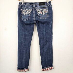 MISS ME Capri Jeans Sz 30 Embroidered Embellished Sequin Floral Cuffed Western