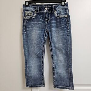 MISS ME Capri Jeans Women's 26 (29x19) Blue Low-Rise Sequin Embroidered EUC