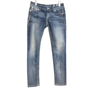 MISS ME Colorful Embellished Skinny Jeans Womens 27 Rhinestone Thick Stitch Y2K