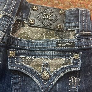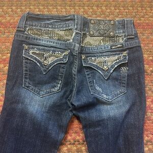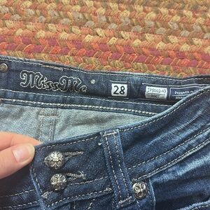 MISS ME DARK WASH BOOT CAMO RHINESTONE DETAIL JEANS