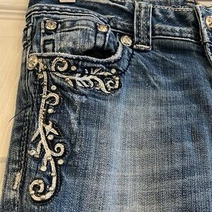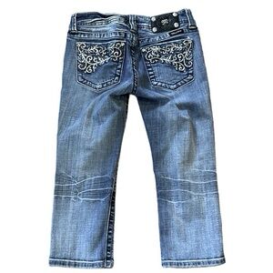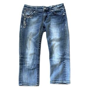 MISS ME DISTRESSED CROPPED DENIM JEANS BLUE SIZE 27