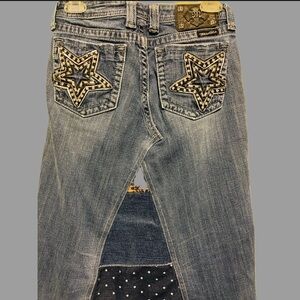 Stylish women's denim skirt featuring a unique multicolor patchwork design. Perfect for casual outings, this blue skirt adds a touch of creativity to your wardrobe. This was a pair of Miss Me Jeans taken & made to a maxi skirt. It is just beautiful made. It’s 14” across waist laying flat & 37.5” in length. Absolutely beautiful. Hem at bottom is raw hemmed.