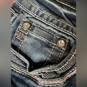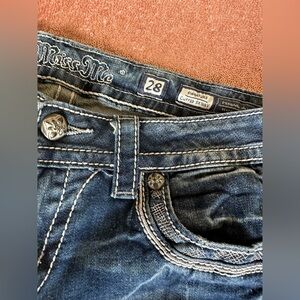 MISS ME SIGNATURE (CUFFED SKINNY) JEANS TAG Sz 28. BEADED Aztec-style. Y2K. Boho