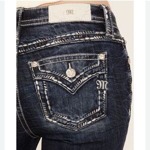 MISS ME SKINNY DARK WASH JEANS SADDLE STITCH POCKET RED,WHITE AND BLUE SZ 27