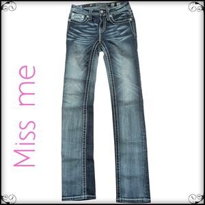 MISS ME Skinny Jeans Bedazzled Cross, Beads & Rhinestones Back Pockets Women 26