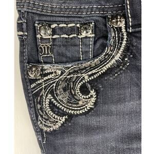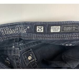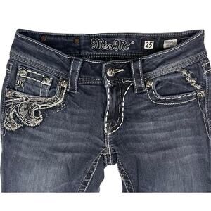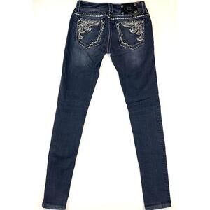 MISS ME Skinny Low Rise Embroidered Jeans Womens (25x31) Dark Rhinestone Mcbling