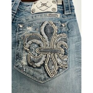 I love these super cute MISS ME Standard Crop Jeans in size 28! Gorgeous pair of crop style jeans with beautiful white back patch (always stands out on a pair of Miss Me’s!) and super pretty fleur-de-lis embellishments on back pocket.