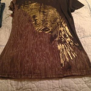EUC and fabulous!!! Tissue tee with gold accents and small rhinestones. Pics don't do this top justice. You will not be disappointed unless it doesn't fit, which is the case for me.
