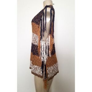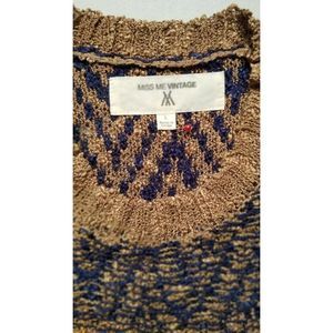 MISS ME V LADIES MULTICOLOR MIXED KNIT BOHO SWEATER TANK TOP SIZE L #702