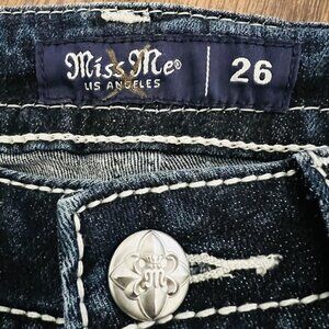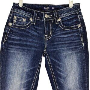 MISS ME Women's Blue Denim Ankle Jeans Sz 26 Embellished Skinny Low Rise Stretch