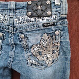 Miss Me jeans, Miss Me bootcut jeans, Y2k bootcut jeans, y2k bling jeans, Miss Me low rise jeans, Miss Me extra long jeans, bootcut denim, embellished back pockets, sequin jeans, rhinestone jeans, embroidered pockets, mid rise jeans, faded wash denim, bling jeans, Western style jeans, rodeo cowgirl jeans, Y2K jeans, glam denim, thick stitch, 37" inseam, extra long inseam, extra tall, embellished denim, whiskered, Y2K flap pockets, bling, low rise long inseam, bling jeans, miss me fleur de lis, early 2000s aesthetic, Y2K bootcut jeans