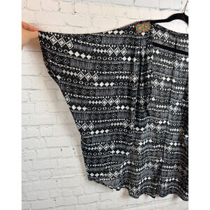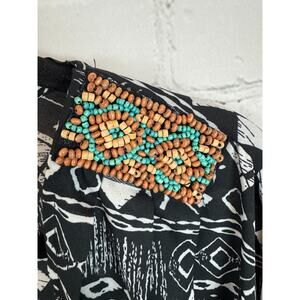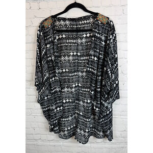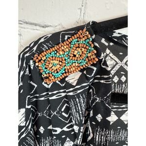 MISS ME black white aztec wood beaded open front cardigan blouse poncho L